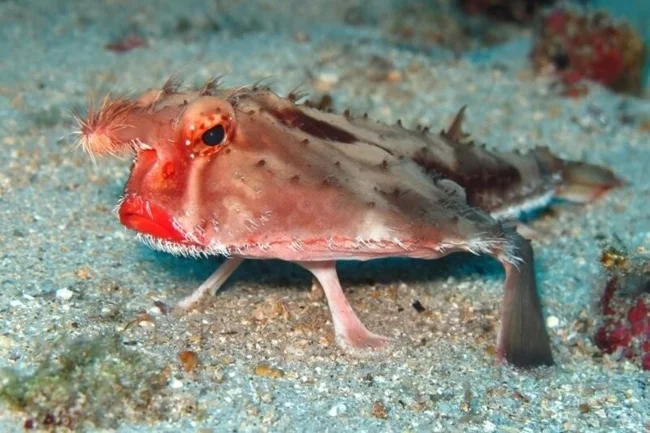 Эта Ррыба с вечно недовольным «лицом» и пухлыми красными губами предпочитает не плавать, а ходить по дну.