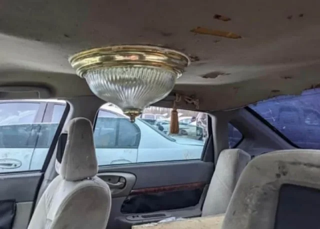 Из-за солнца совершенно не была видна панель магнитолы. Из конструктора лего сделали козырек