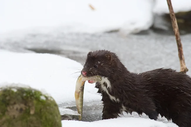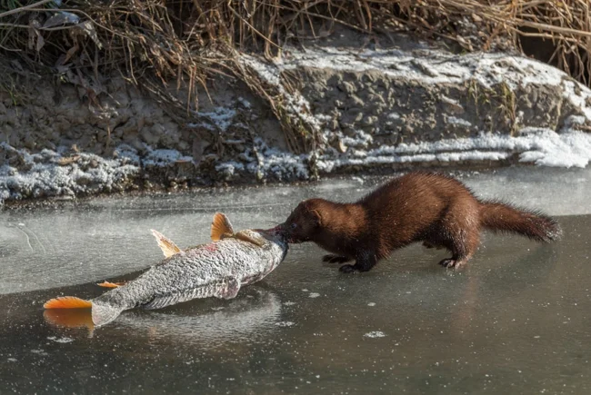 Благодаря плотному меху норка способна охотиться под водой даже зимой!