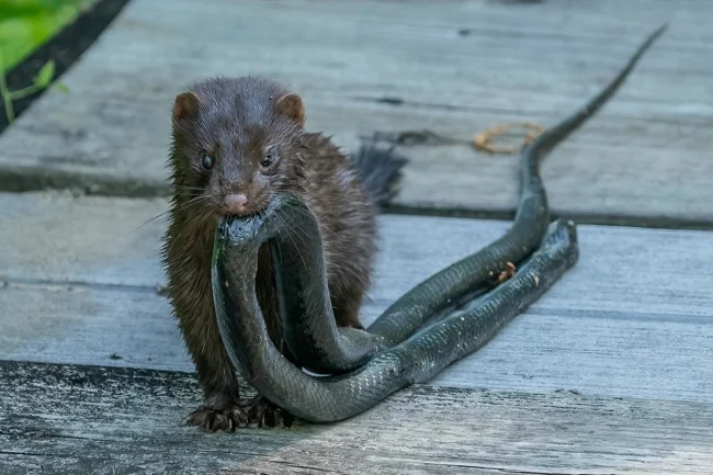 Американская, или восточная норка — один из самых злобных и жестоких представителей семейства куньих. Потягаться с ним могут разве что росомаха и Медоед, но там и габариты в несколько раз больше. А тут — от горшка два вершка. Точнее, 2 кг веса и полметра длины тушки. Но взрослых зайцев и огромных змей мочит как ни в чём не бывало. Здоровенную рыбу, водоплавающих птиц, ондатр — туда же. Эти поехавшие даже на цапель и бакланов пытаются охотиться! При том, что птицы в несколько десятков раз больше!