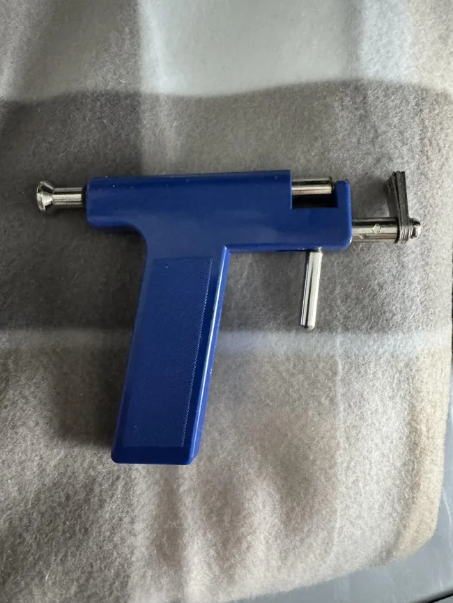 Пистолет, но только для пирсинга. Инструмент используется для прокалывания ушей.