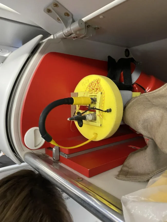 8. Жёлто-красная конструкция с проводом в резиновой изоляции в самолёте
