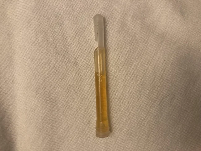 5. Маленький пластиковый цилиндр с вязкой жидкостью внутри и зажимом в верхней части