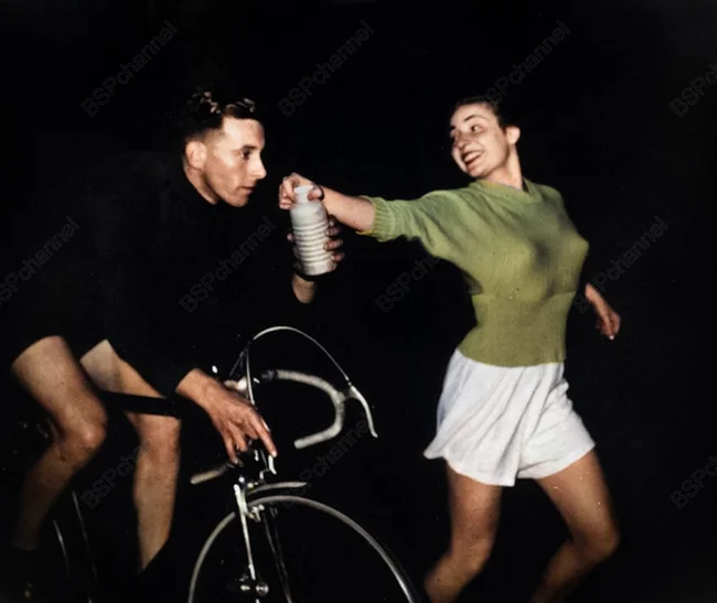 Британский велосипедист Кен Джой (Ken Joy) устанавливает рекорд скорости. Лучший британский велогонщик 1949–1952 г.