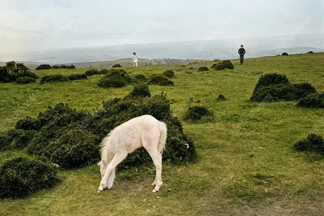 Дикий пони и туристы. Блэк-Маунтинс, Уэльс, Великобритания, 1974 год.