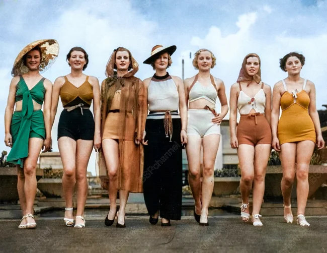 В те годы купальники стали настоящим вызовом традициям и символом перемен в моде и морали. Они открывали гораздо больше женского тела, чем раньше, когда господствовали скромные купальные костюмы из плотной шерсти или хлопка. В 1930-х — женщины всё смелее выходили на пляж в облегающих костюмах, подчёркивающих формы. Это был не просто смена фасона, но и выражение нового отношения к свободе, к телу, к себе.