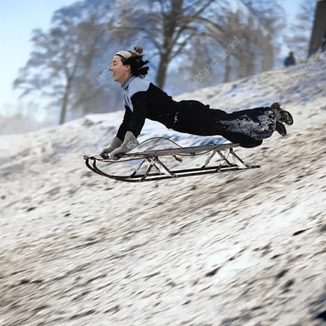 Катание на санях в Хэмпстед-Хит. Лондон, 1938 год.