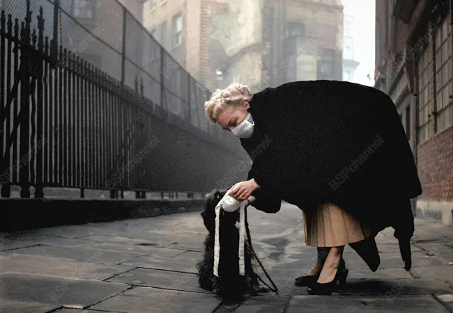 Женщина надевает маску своей собаке во время «Великого смога». Лондон, 1952 год.