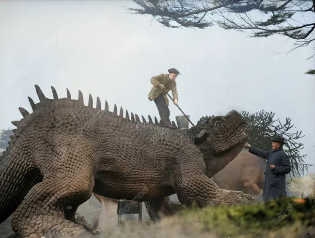 Чистка статуи динозавра в Лондоне, 1927 год.