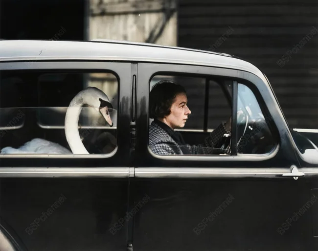Лебедь по кличке Лейла в автомобиле. Великобритания, 1936 год.