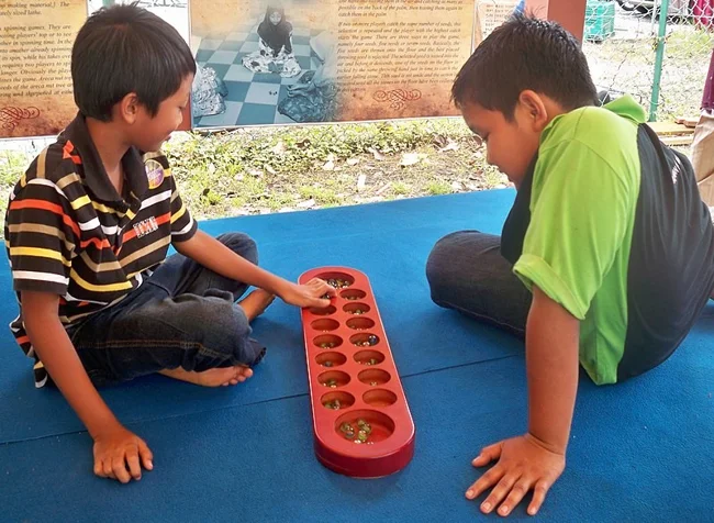 Доска для игры в традиционную малайскую игру чонгкак. Аналоги игры под другими названиями есть и у многих других народов.