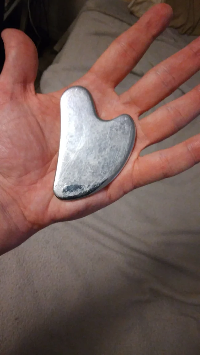 Скребок для массажа гуаша. Этот древний массаж лица и тела скребком практикуется в Азии веками. Он работает не только с кожей, но и с мышцами, за счёт правильного давления активизируется обмен веществ, разглаживаются морщины. Благодаря ему подтягивается овал лица и возвращается здоровый тонус.