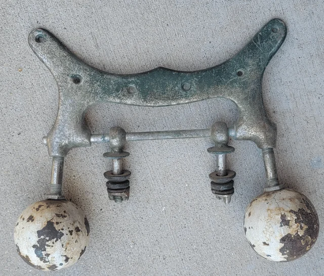 8. Тяжелый стальной предмет с двумя большими сферами и стержнями, которые могут поворачиваться вокруг оси