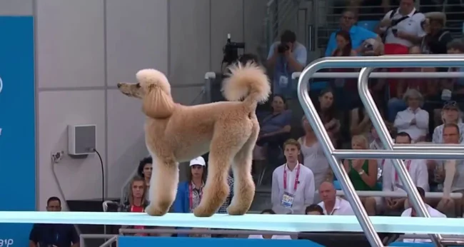 Как могли бы выглядеть соревнования по прыжкам в воду среди собак (1 фото + 6 видео)