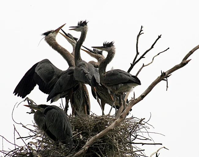 Молодые цапли встают на крыло уже ко второму месяцу. Но первое время они регулярно возвращаются в гнездо, чтобы родители их покормили.