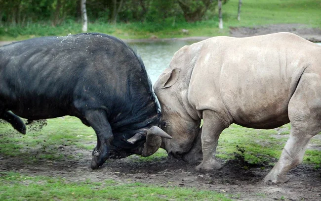 Африканский, или чёрный буйвол — один из крупнейших представителей полорогих во всём мире. К полорогим относятся антилопы, коровы, козы, барашки. Среднестатистический африканский бычок-качок вырастает до 110 сантиметров в холке и набирает рекордные 900 килограмм. А вес матёрых самцов и вовсе переваливает за тонну! И это — первая причина, почему спорить с таким шкафом — себе дороже. Вы просто не в той весовой категории!