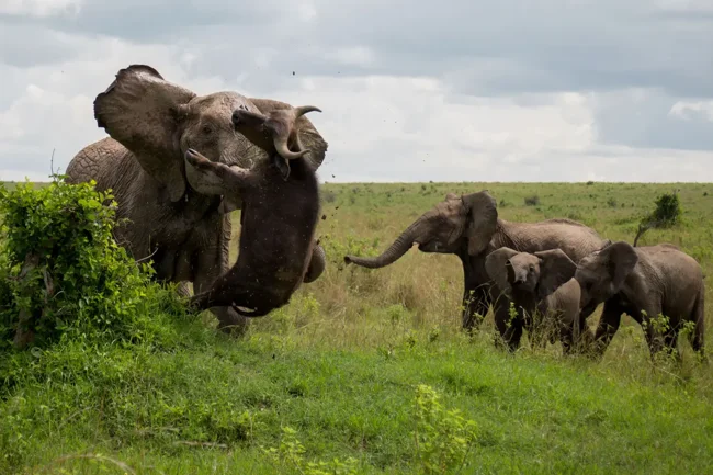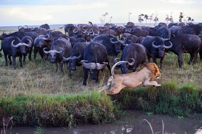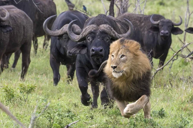 Среди хищников львы — единственные, кто способен завалить махину. Но для этого им необходим весь прайд. К тому же далеко не всегда охота идет по плану. В лучшем случае буйные коровы гонят львов на дерево, как дворовых котят, и держат там часами, не давая слезть. В худшем, большие кошки получают травмы, несовместимые с жизнью.