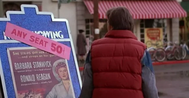 В фильме «Назад в будущее» Марти находит Дока Брауна в прошлом и отчаянно пытается убедить его, что он из будущего. Чтобы доказать, откуда он, Док спрашивает Марти, кто был президентом в 1985 году, но ответ не сильно помогает, поскольку это был бывший киноактёр 50-х Рональд Рейган.