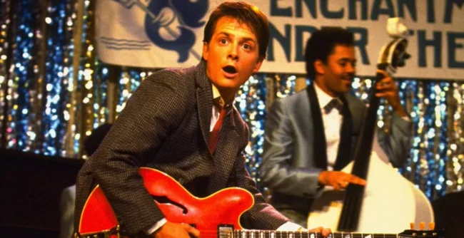 Ближе к кульминации фильма «Назад в будущее» Марти вынужден играть на гитаре в группе Марвина Берри, чтобы его родители наконец-то смогли поцеловаться (и тем самым спасти его).