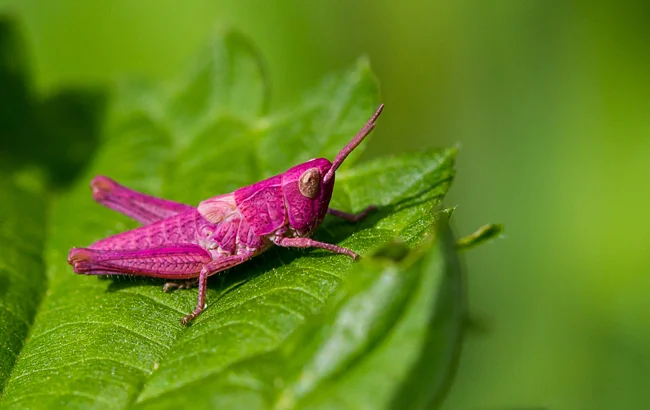 Самый яркий пример эритризма — розовые кузнечики. Они встречаются довольно часто даже в наших широтах, и вы обязательно наткнётесь на одного из них, если будете достаточно внимательны.