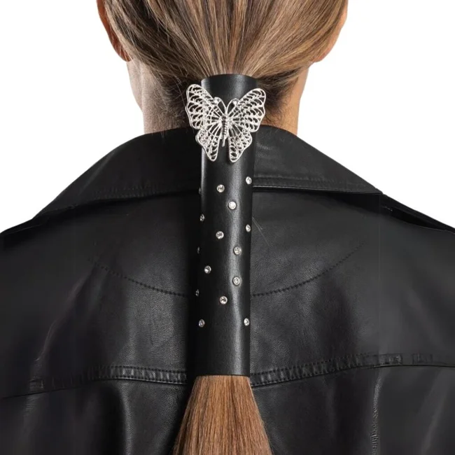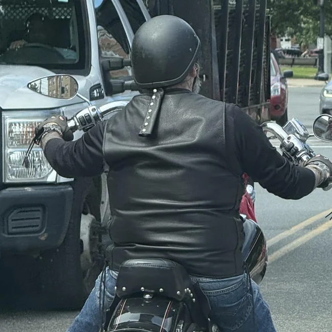 1. Кожаный чехол с заклёпками, который не закреплён на шлеме байкера