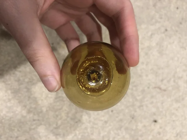 2. Большой коричневый стеклянный шар, найденный плавающим в озере