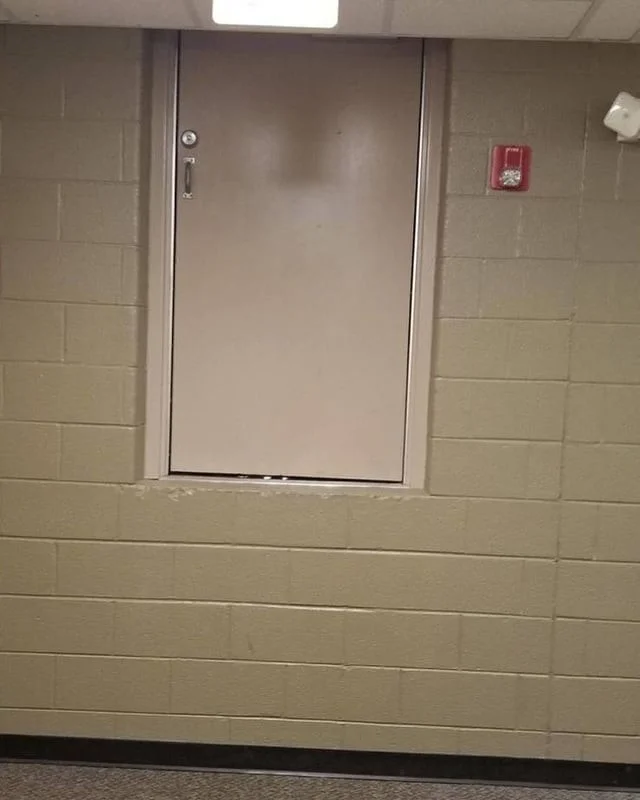 Это непроверенная информация, но как иначе это объяснить? А, ну или так: сначала установили дверь, а уже потом пол и потолок. Звучит правдоподобно?