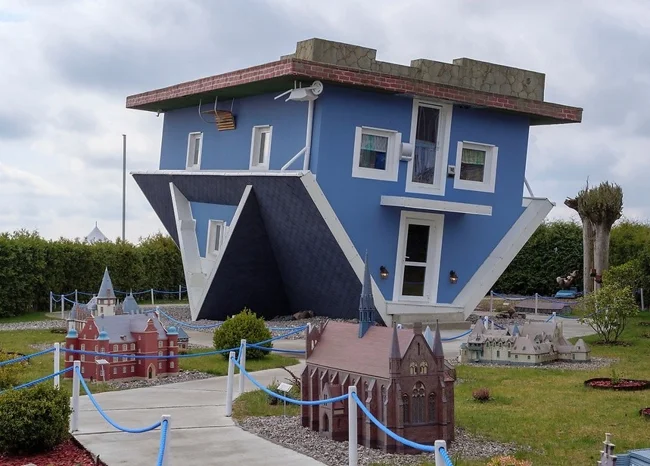 Построенный в 2008 году, этот необычный аттракцион предлагает посетителям взглянуть на жизнь с нового ракурса. В прямом смысле. Войдя через чердак (который теперь находится внизу), гости оказываются в полностью обставленном доме, где ходят по потолку, а мебель «висит» над головой.