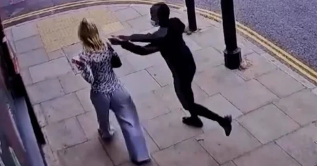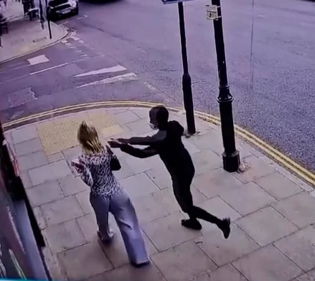 На кадрах, снятых на углу Сотби-роуд и Хайбери-парк, женщина идёт по тротуару и смотрит в свой смартфон. Мужчина в чёрном и с маской на лице внезапно подбегает к ней и вырывает устройство, прежде чем исчезнуть за углом.