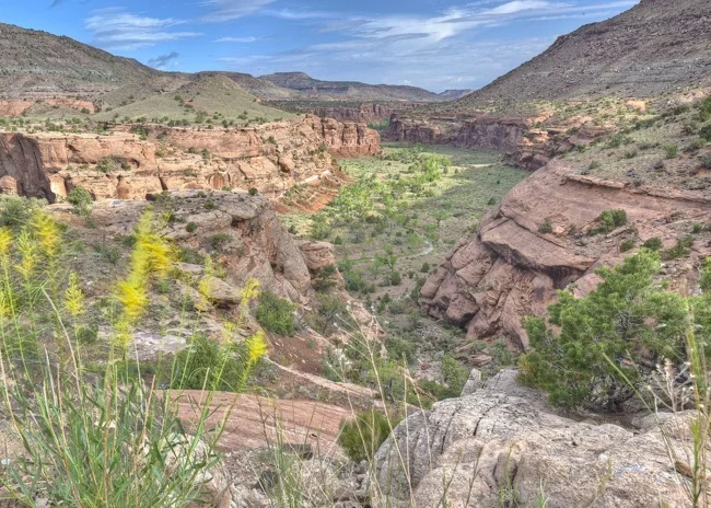 Каньон вымыли реки Колорадо или Ганнисон, которые затем изменили русло.