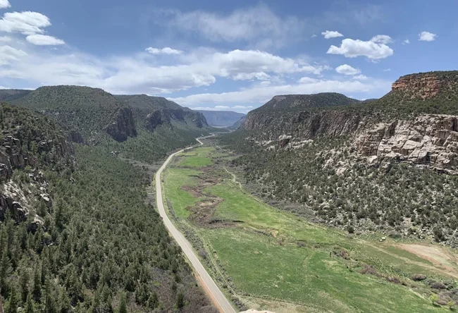 Сегодня каньон находится в частной собственности. Его земли принадлежат ранчо и владельцам домов. В начале XX века здесь проходила грузовая тропа для перевозки радиевой руды, позже ставшая шоссе. ![]()