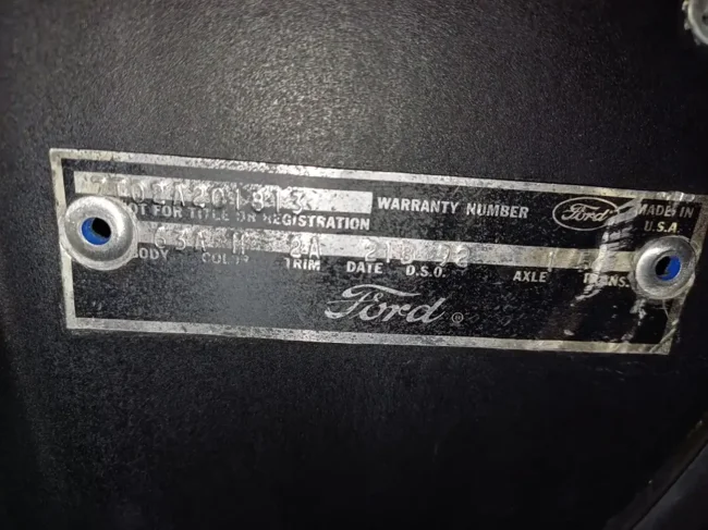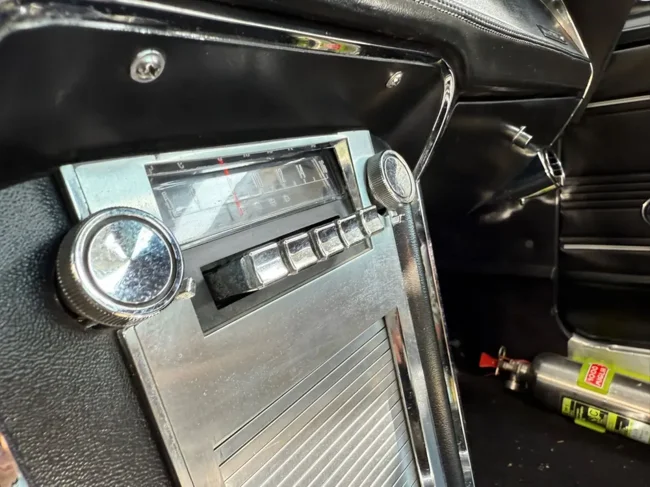 В оснащение двухдверки входят кондиционер и радиоприёмник. В ногах пассажира установлен огнетушитель. Двигатель V8 через 4-ступенчатую «механику» приводит задние колёса. Пробег машины неизвестен.