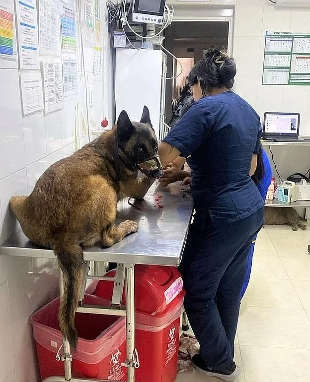 Несмотря на тяжёлые ранения, в том числе раздробленную лапу, собаке удалось доползти до своего куратора, солдата Карлоса Эдуардо Беленьо.
