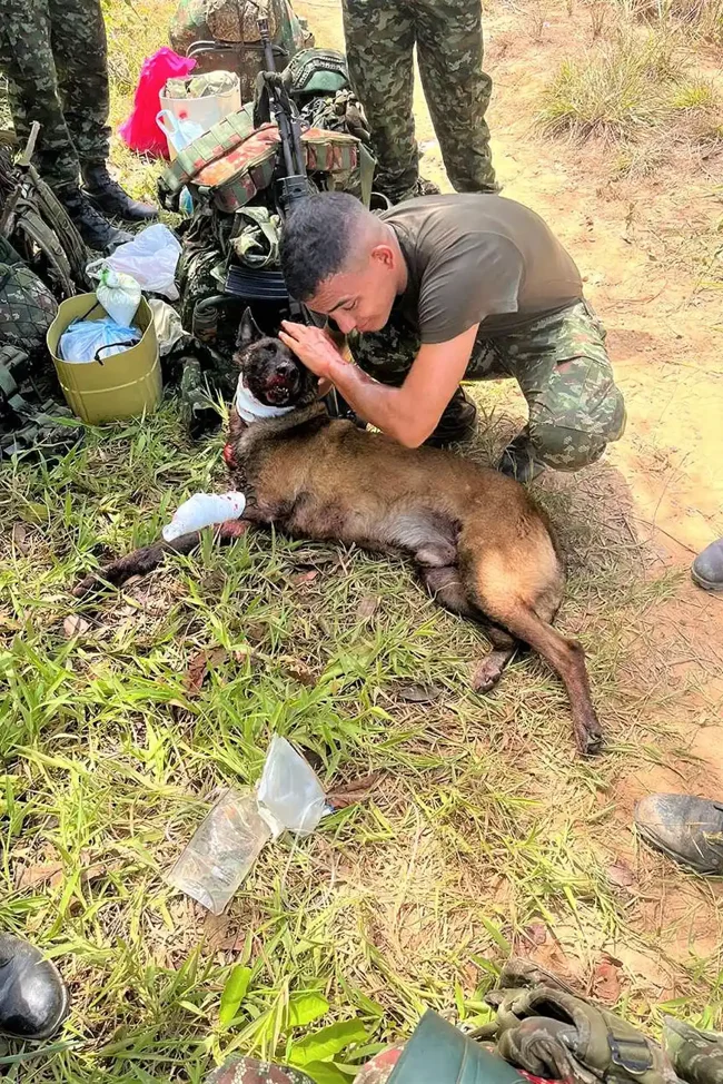 Второе подразделение Национальной армии сообщило в соцсетях: «Наш четвероногий герой потерял лапу, но спас жизни 36 солдат и жителей деревни Ла-Райя в Йондо-Антьокии».