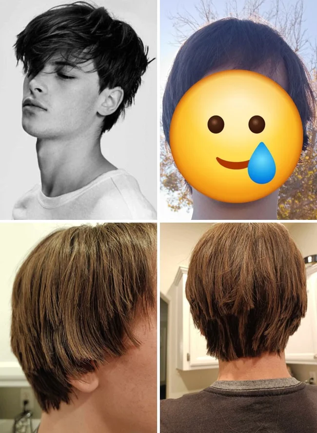 10. Моя мама прошла курсы парикмахера. После небольшой практики она пригласила моего брата на стрижку. Результат превзошёл все ожидания