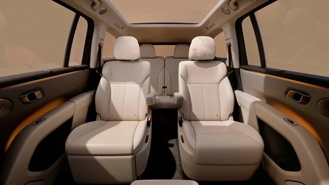 Как на официальных, так и на шпионских фотографиях Li Auto i8 запечатлён с шестиместным салоном, где на втором ряду установлены индивидуальные кресла. Оба они укомплектованы подлокотниками, правое отличается выдвижной подставкой для ног. Можно увидеть также большую прозрачную вставку в крыше, а на одном из неофициальных снимков заметны потолочный экран для задних пассажиров и миниатюрная сенсорная панель. В оснащение электрокара войдут две беспроводные зарядки. Других подробностей о комплектации i8 пока нет.