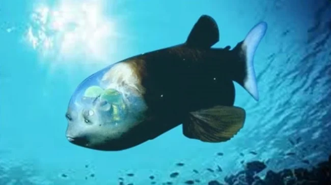 Известна также как бочкоглаз. У глубоководной обитательницы помимо крупных зелёных глаз на голове имеются две впадины, тоже напоминающие органы зрения. На самом деле это это рецепторы обоняния.