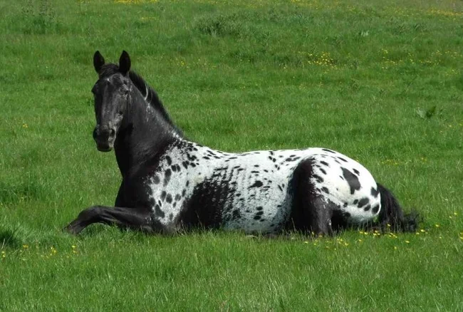 Чубарая лошадь, выведенная в США индейцами не-персе путём селекции для охоты и войны. Пятна — результат сложной комбинации генов, причём рисунок может меняться в течение жизни, как у далматинцев. Некоторые жеребята рождаются однотонными, а потом «проявляются» пятнами. У аппалузы вертикально-полосатые копыта, а у многих белки глаз видны как у людей, что придаёт взгляду почти человеческую выразительность.