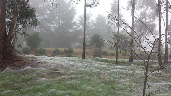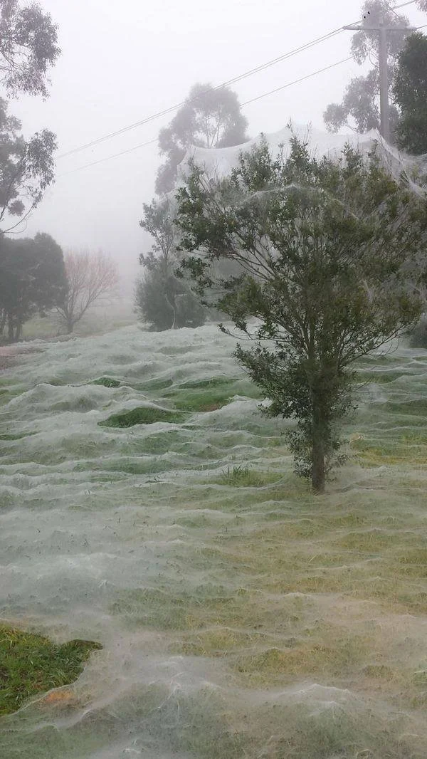 Если вы арахнофоб, то не смотрите эти картинки - потому что так выглядит обычный день в австралийском штате Виктория, где в зимний период всё становится белым из-за пауков, которые покрывают всё вокруг массивными полотнами, сделанными из паутины.