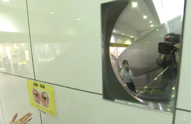 Там уже выпускают телефоны исключительно с громким затвором камеры при фотографировании, ставят постеры с предупреждением. Но этого мало, Фукуока придумала новый метод. На станциях метро Фукуоки рядом с эскалатором ставят зеркала против подглядываний. У него специально отмерен угол обзора и размер, чтобы позволять пассажирам замечать вуайеристов позади себя или тех, кто фотографирует людей украдкой.
