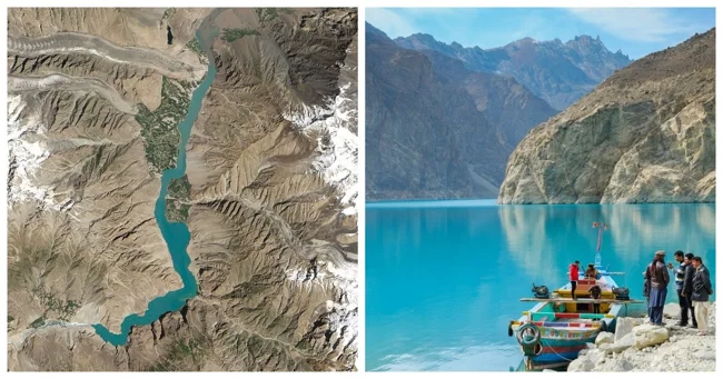 На спутниковых снимках хорошо видно, как озеро Аттабад вписалось в горный ландшафт. Примерно через три недели после основного оползня произошёл повторный сход грунта, что дополнительно изменило очертания береговой линии.