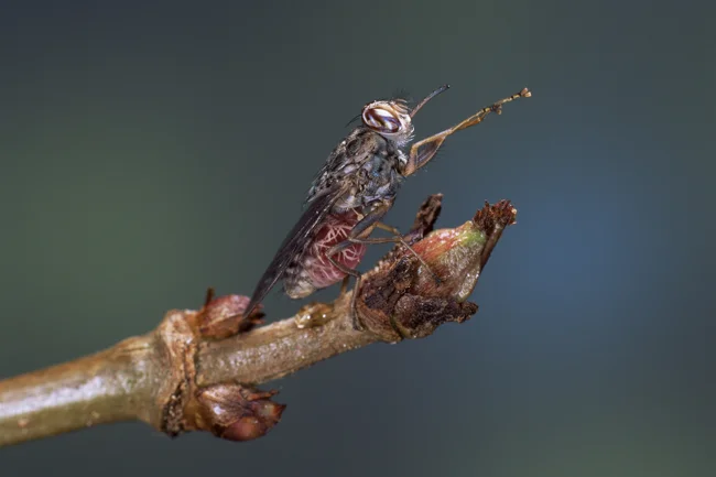 Раздутое брюшко цеце сообщает нам о том, что там зреет личинка.