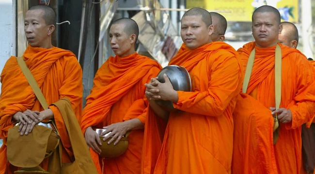 Все примерно представляют, как проходит день буддийского монаха: с утра после молитвы они покидают храм, чтобы собирать милостыню или подношения от верующих буддистов в свои котлы.