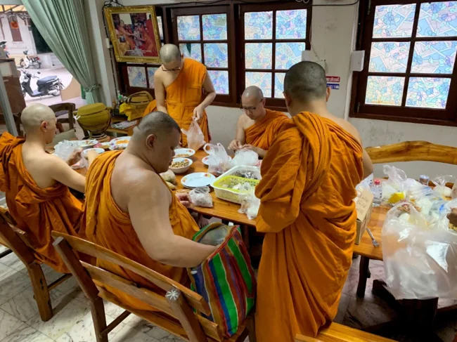 Их обед зависит буквально от того, что положили в котелок. И обычно это калорийная пища, часто домашнего приготовления. Все из добрых побуждений, верующие-буддисты хотят предложить что-то ценное и вкусное. Из-за лишнего веса монахи страдают от диабета, высокого кровяного давления, испытывают проблемы со зрением, страдают от остеоартрита коленных суставов. Но обычно монахи даже не понимают, что именно с ними – нет образования. Когда проводился медосмотр монахов, врачи оказались в шоке. Потому что у многих монахов нет пальцев на ногах из-за ампутации из-за диабета, но они даже не знают, что это такое!