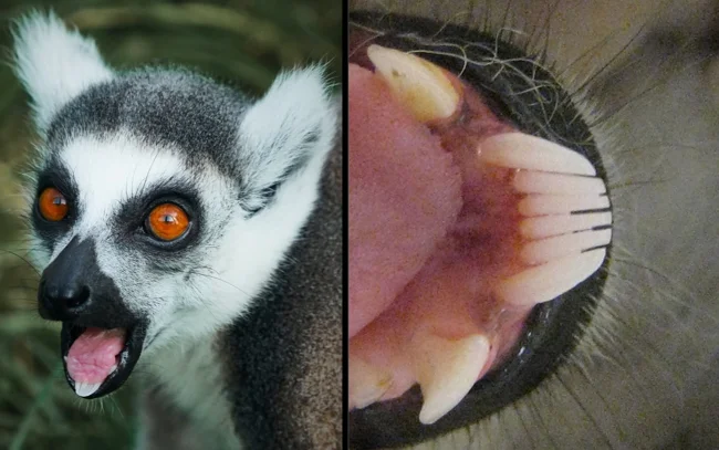 Дело в том, что нижние зубы лемуров длинные и тонкие — как зубчики на расческе. В общем-то, они так и называются — зубным гребнем. Им приматы пользуются, вычесывая себя и друг друга — это важный элемент социального взаимодействия. Как и в любой расческе — в зубном гребне лемуров застревают волосы. Но не лезть же в пасть лапами каждый раз после груминга? Так появился второй язык!