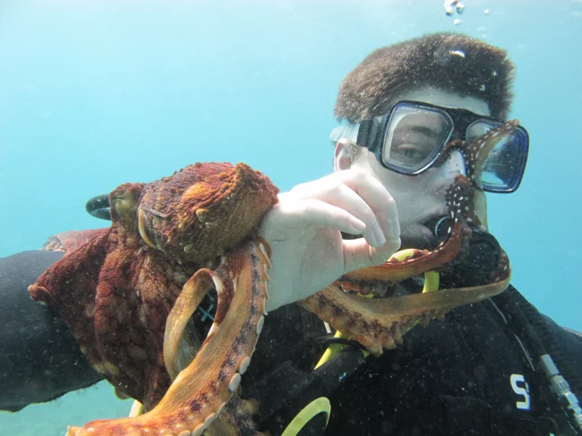 О нет, человек делает сердечную реанимацию осьминогу, но не знает, что качать надо три сердца, а не одно!