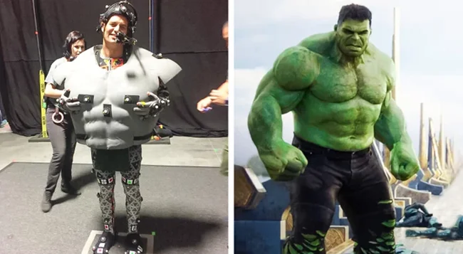 В «Торе: Рагнареке», как и во всех остальных фильмах, Марк Руффало носил поролоновый широкий костюм, который нужен был для того, чтобы актеры во время съемок сцен не подходили к нему слишком близки и в фильме не заходили прямо в графические текстуры Халка. В похожем костюме ходил и Джош Бролин, сыгравший Таноса. При этом Джош также носил высокую антенну над головой, на вершину которой должны были смотреть его коллеги, когда разговаривали с Таносом.