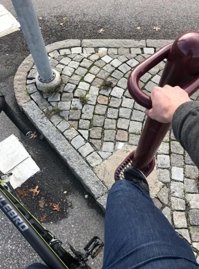 Пока велосипедист ждет сигнала светофора – держится за специальный поручень, если нужно, Швеция