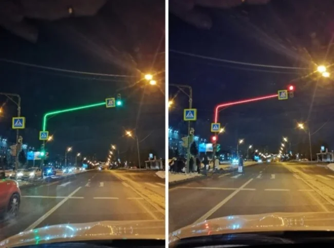 Не просто светофор, а целый столб, который не увидеть просто невозможно