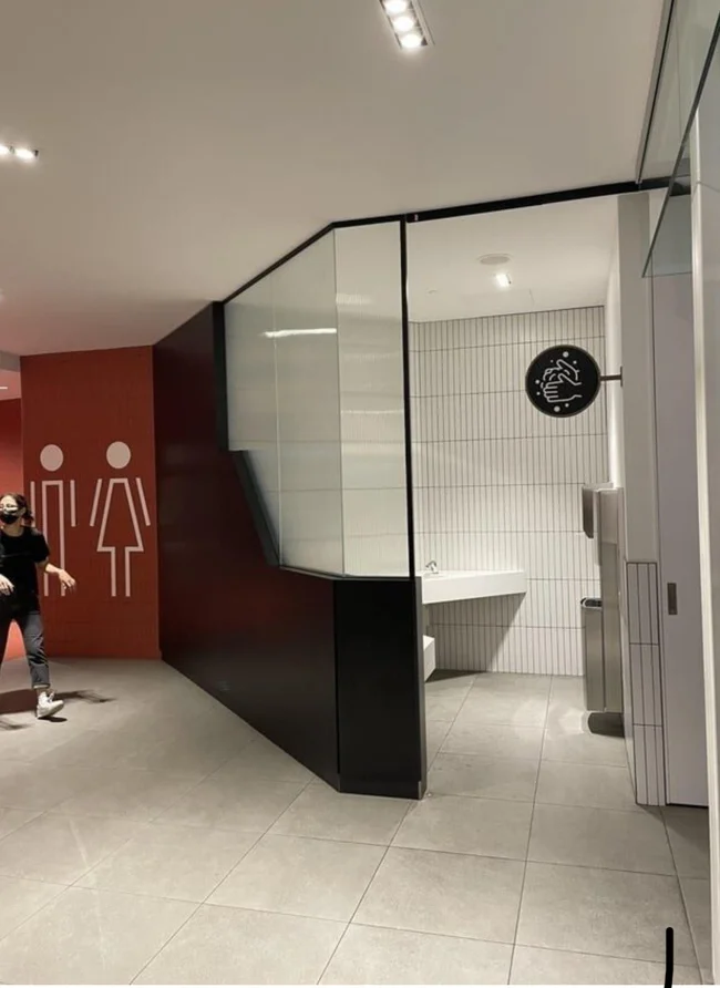 Если просто помыть руки, то можно не заходить в туалетную комнату. Торговый центр